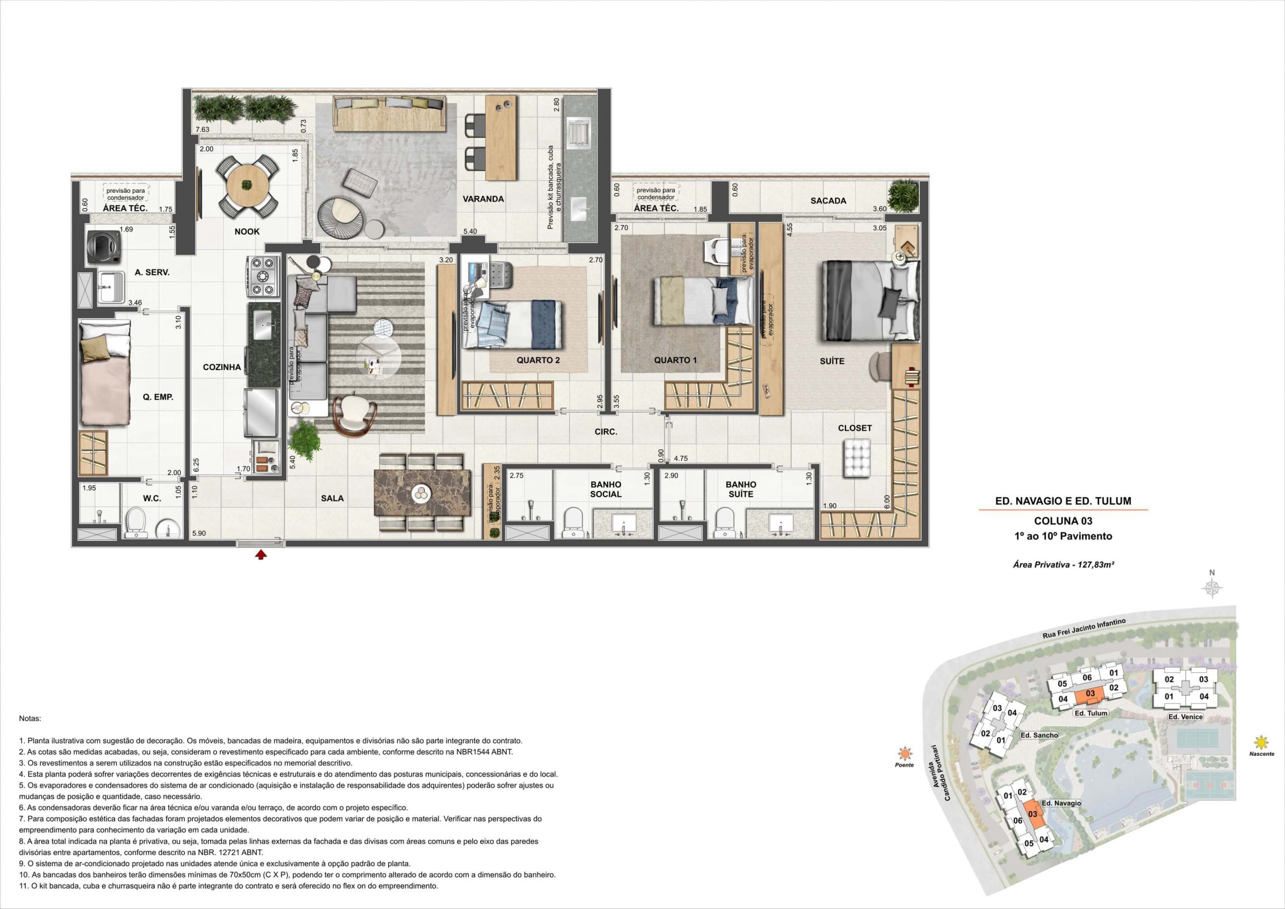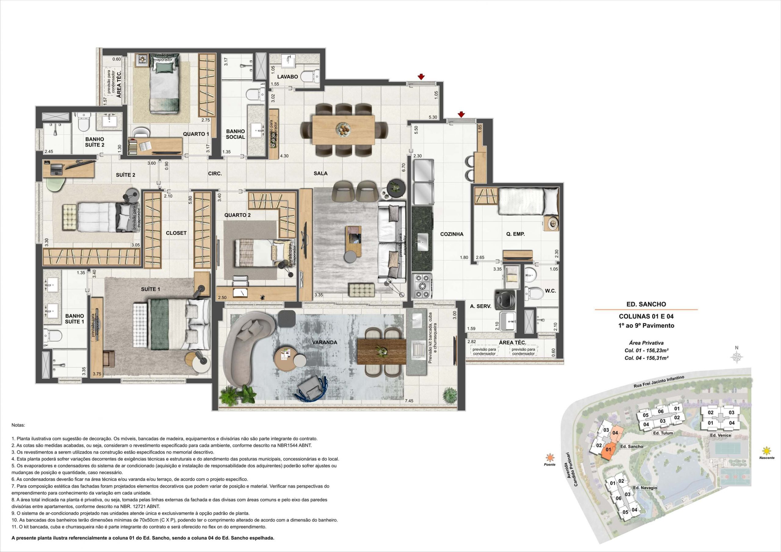 3 quartos de 122m2 a 127m2 4 quartos de 156m2 a 190m2 Coberturas lineares com 3 suites de 183m2 a 188m2 Coberturas lineares com 4 suites de 314m2 a 378m2