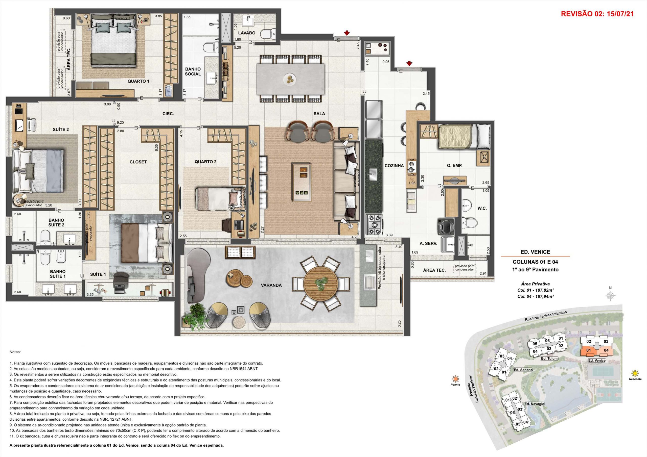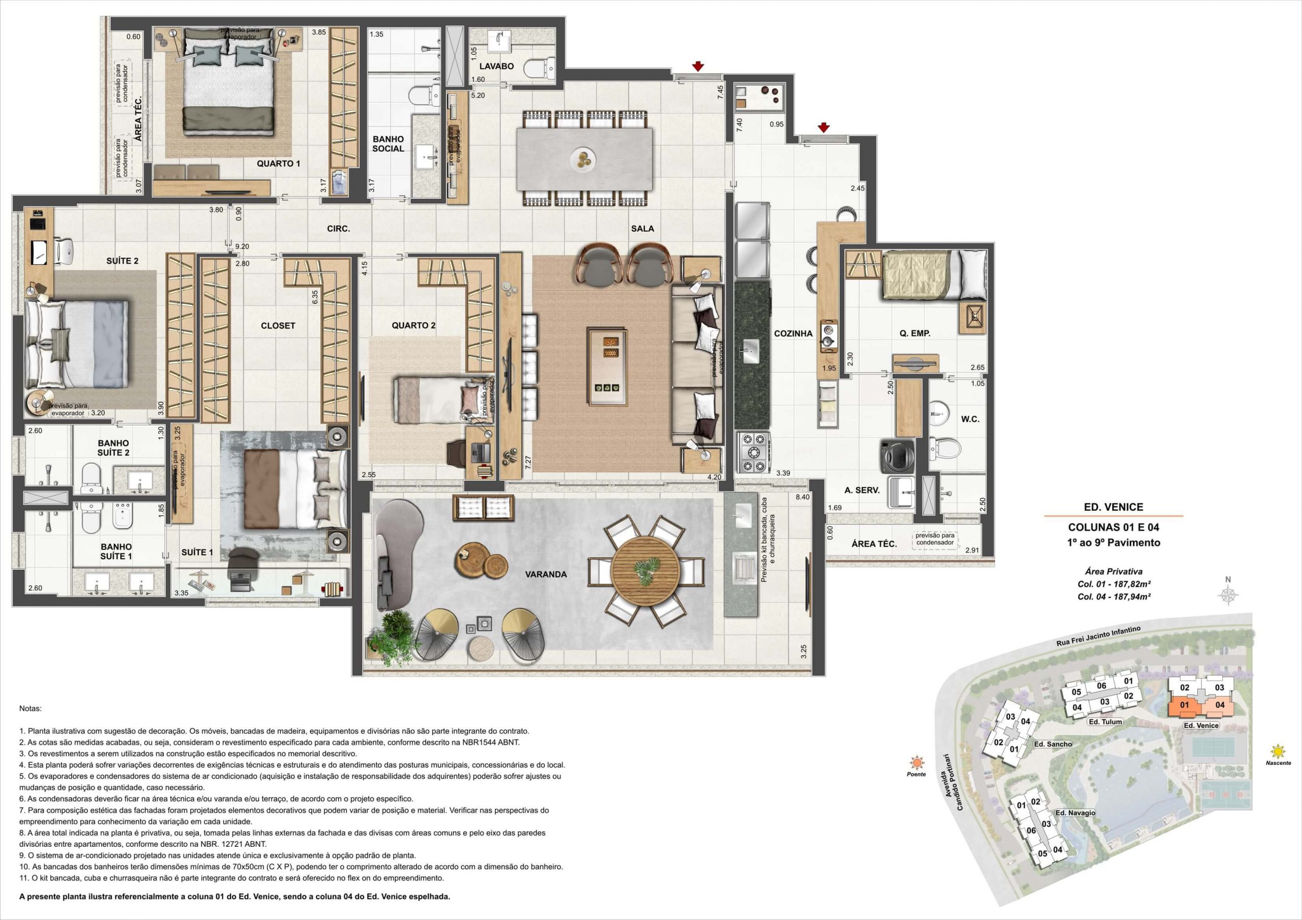 1 a 4 suítes 3 a 6 banheiros 125 a 188m² de área privativa Opções de 2 a 3 vagas na garagem Coberturas Lineares Área de lazer com 12.000m² Localização premium na Barra da Tijuca Terreno de 17.070,28