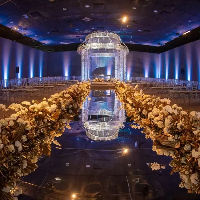 O local recebe eventos como shows, formaturas, casamentos, convenções e comemorações empresariais, e tem diversas opções de personalização e suporte completo para atender às necessidades de cada cliente.
